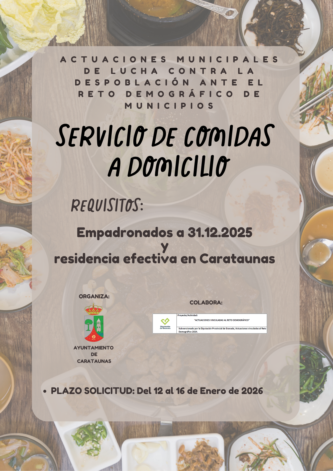 SUBVENCIÓN DESTINADA A LA FINANCIACIÓN DE ACTUACIONES MUNICIPALES PARA LA LUCHA CONTRA LA DESPOBLACIÓN Y ANTE EL RETO DEMOGRÁFICO DE MUNICIPIOS DE LA PROVINCIA DE GRANADA 2024 "SERVICIO DE COMIDAS A DOMICLIO"